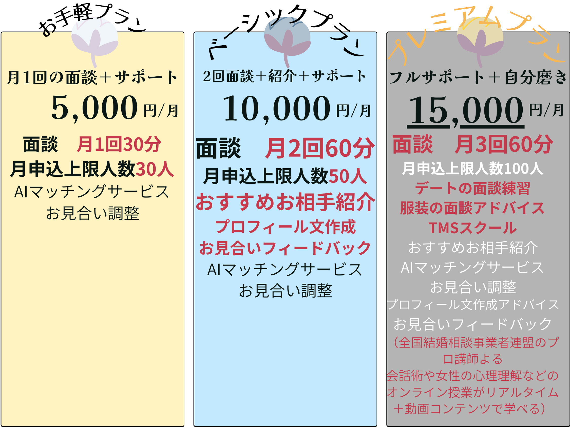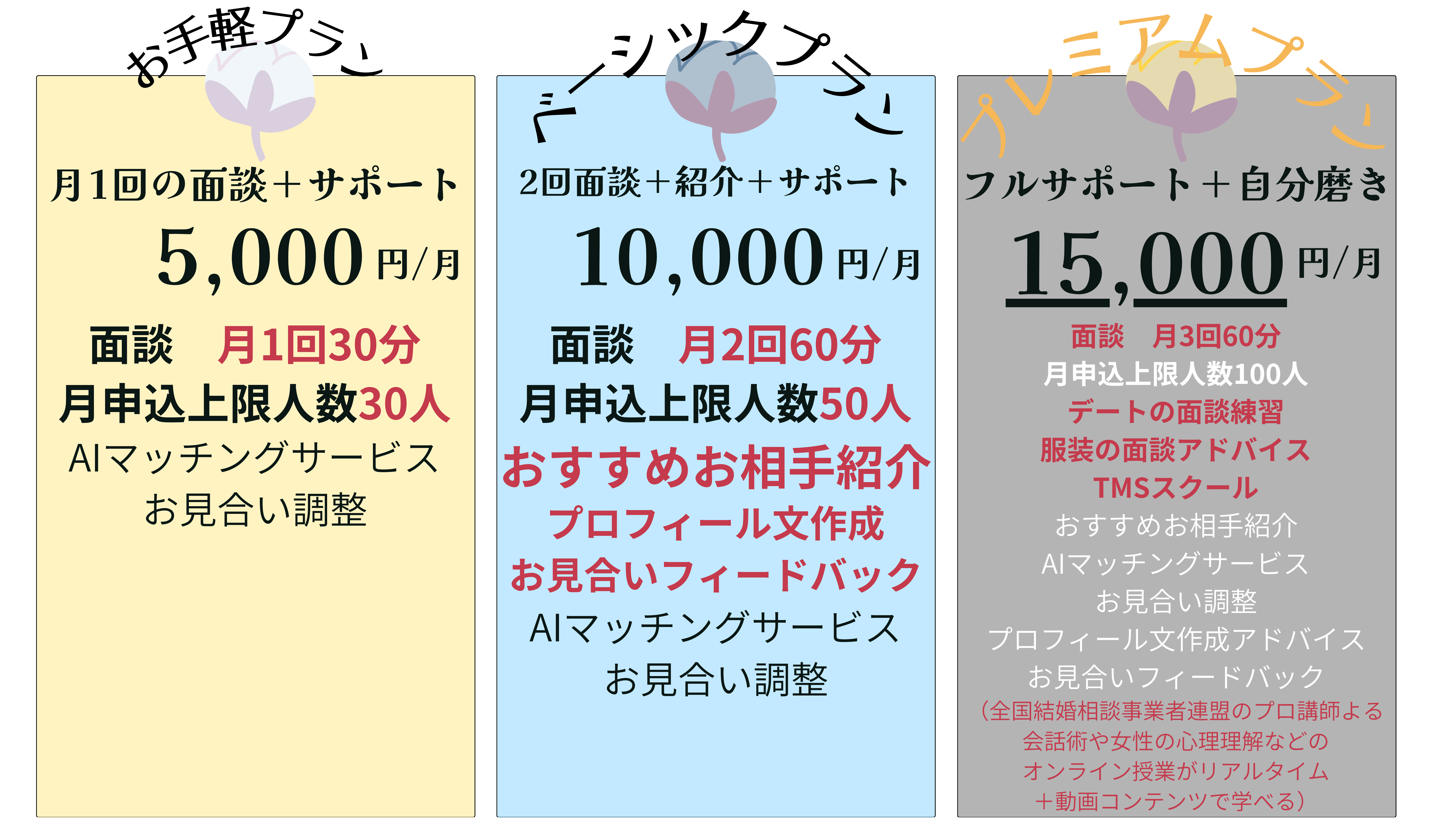 また、ご自身だけでの婚活に不安な方でも、しっかりと相談員が面談をして結婚をサポートしてまいります。